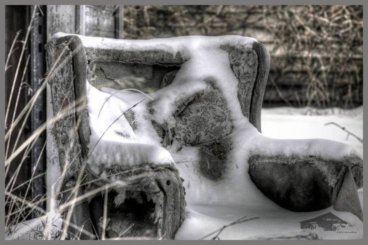 A chair covered with snow now. One would