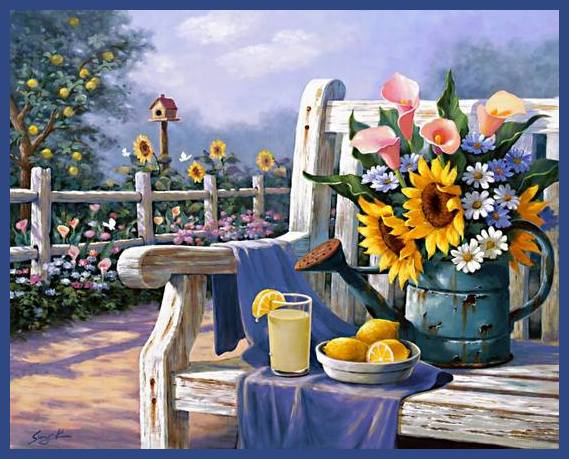 The old strainer loaded with garden goodies no doubt,