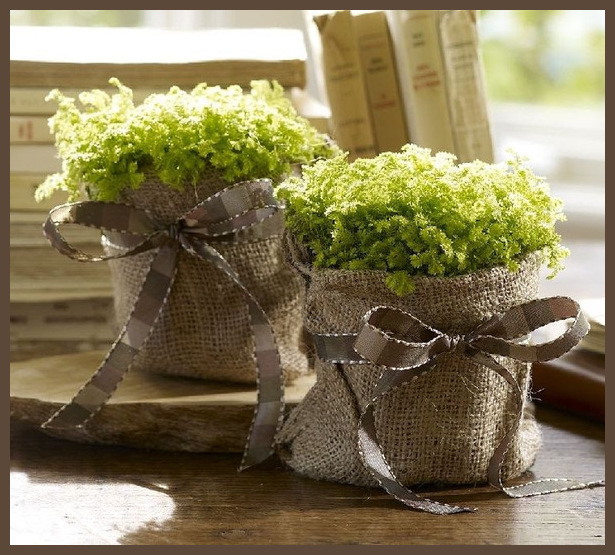 The popular burlap used quite well here.